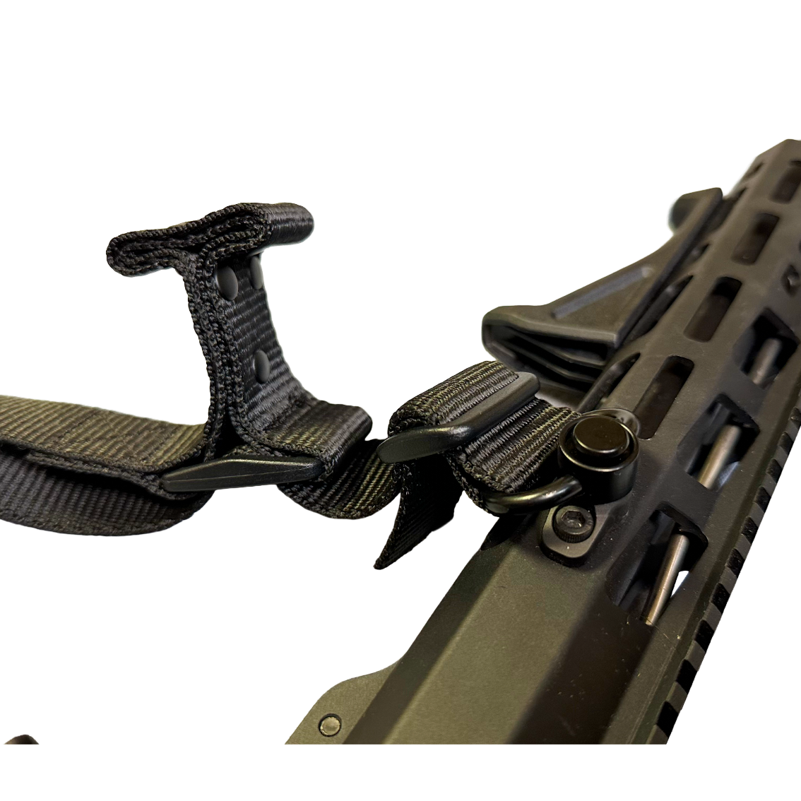 The quick adjust handle enables flawless sling length adjustment making it ideal for 2 gun competition shooters where having your weapon cinched up close to your body while operating your side arm is essential.