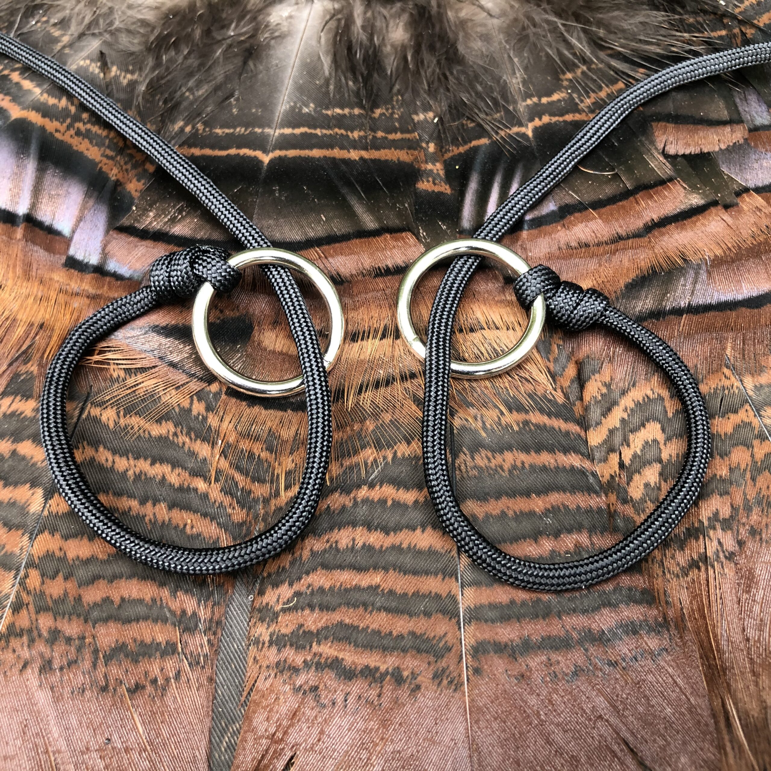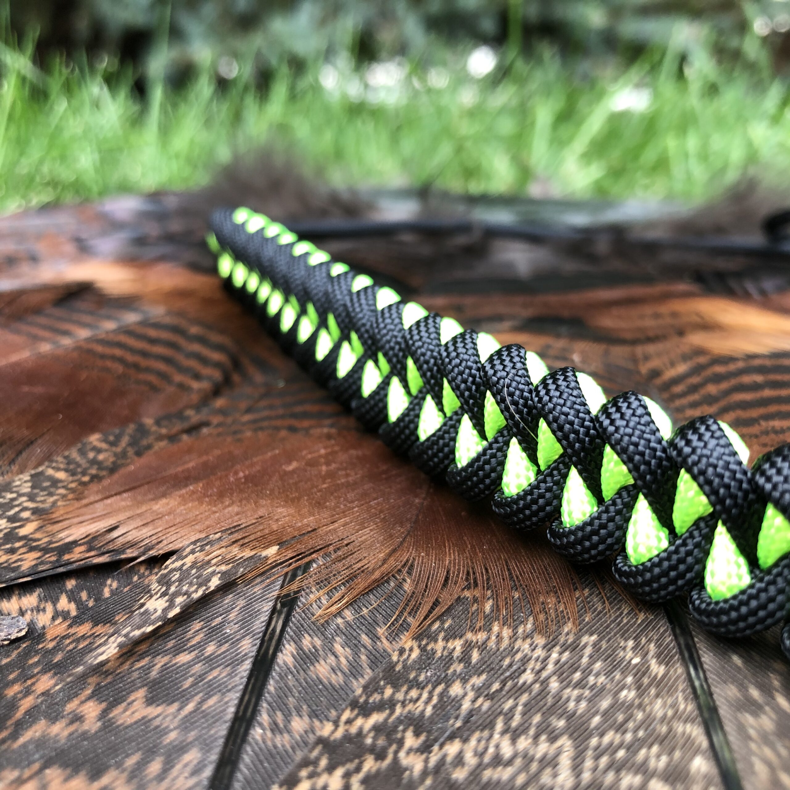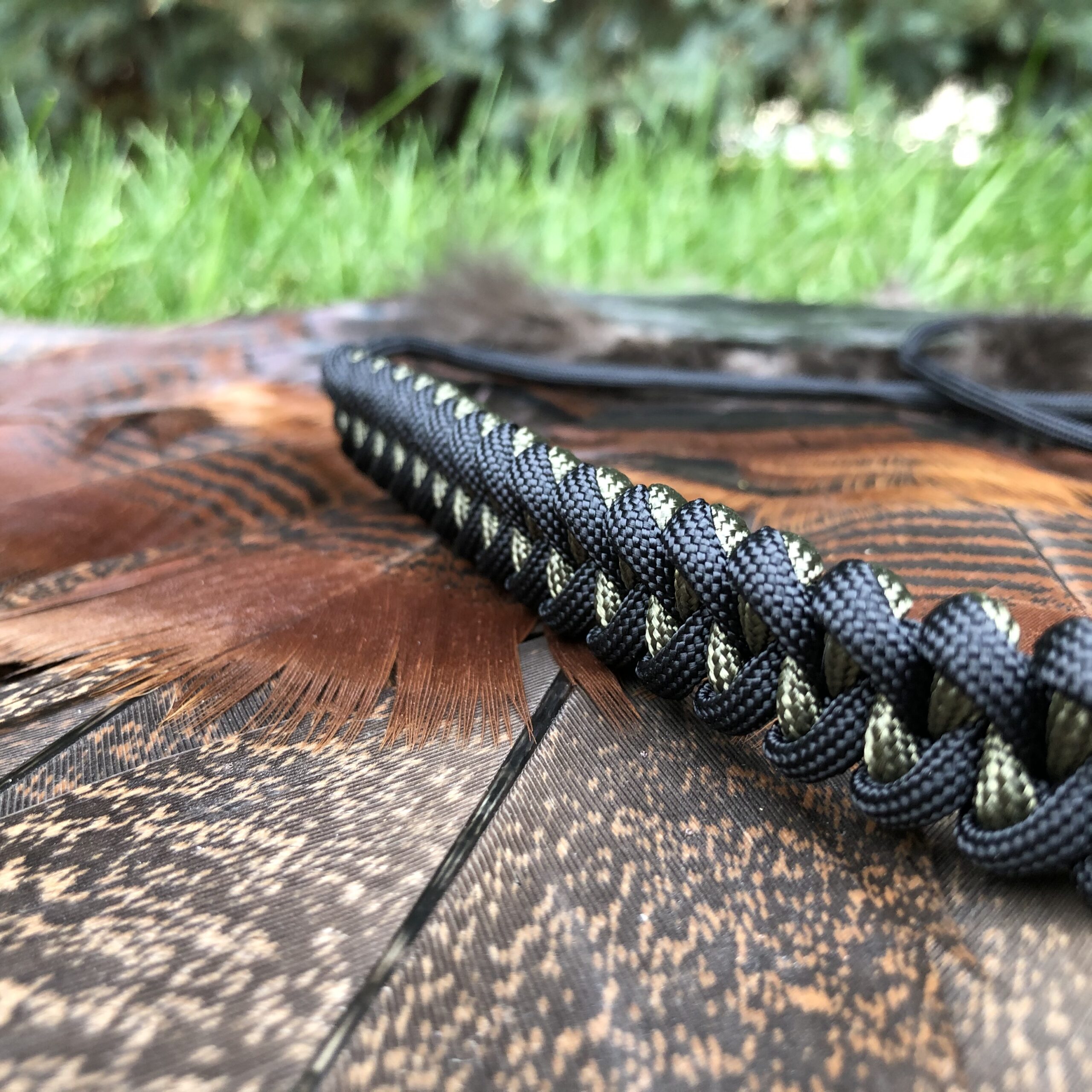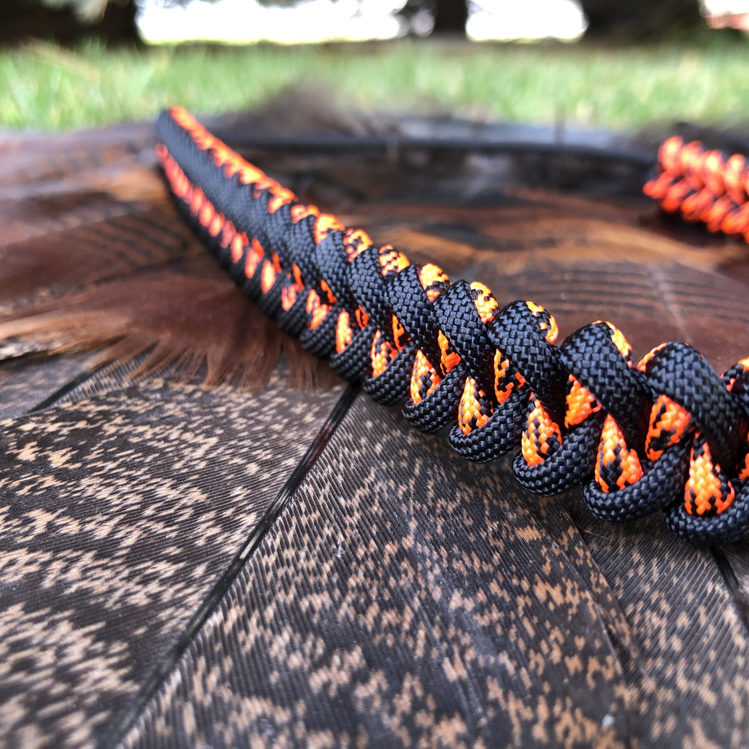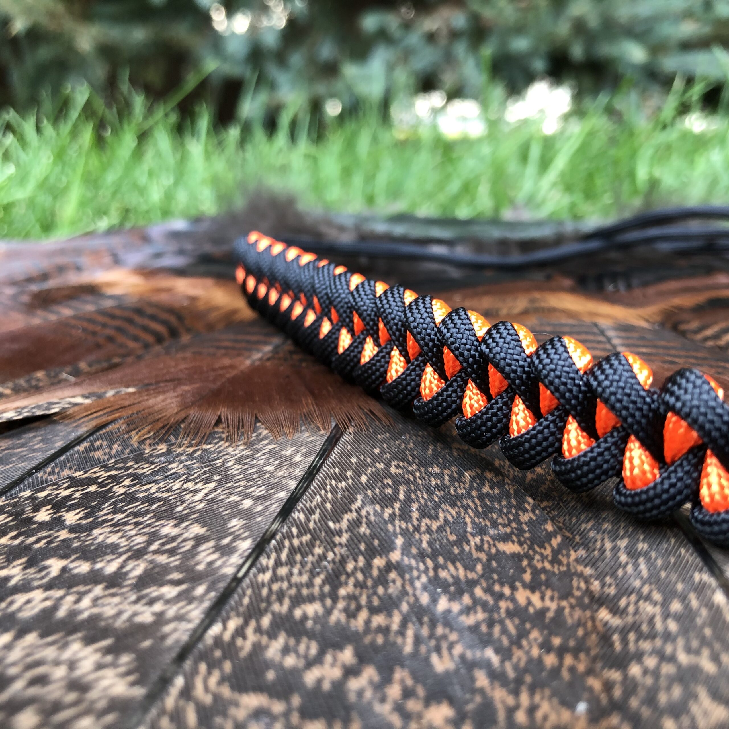 Introducing the latest addition to your hunting gear – the Paracord Game Carrier. This sturdy and handcrafted accessory is designed to make transporting large games a hassle-free experience. Measuring approximately 4ft 2 in length and 11/16in width at its widest point, this tote is versatile enough to carry small game too. Its black and neon orange color scheme ensures high visibility, while its compact and lightweight build allows for easy storage in any pocket or compartment.