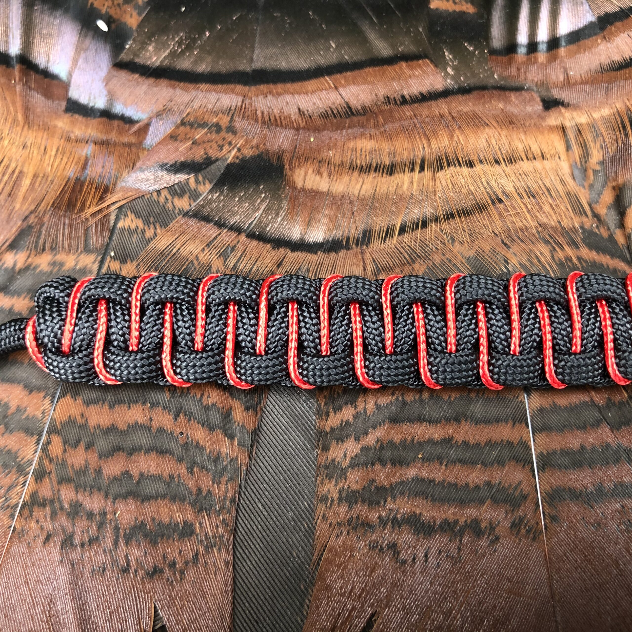 Introducing a meticulously crafted Turkey Tote made with high-quality American Made Paracord. This tote is the perfect solution for transporting your game with ease, simply by placing the legs through one loop and the head through the other. It ensures a comfortable walk after a successful hunt. Its versatility is not limited to turkeys only, as it can also be used to carry other small game such as ducks, geese, rabbits, and more. This practical tote is a must-have for any hunter who values convenience, comfort, and durability.